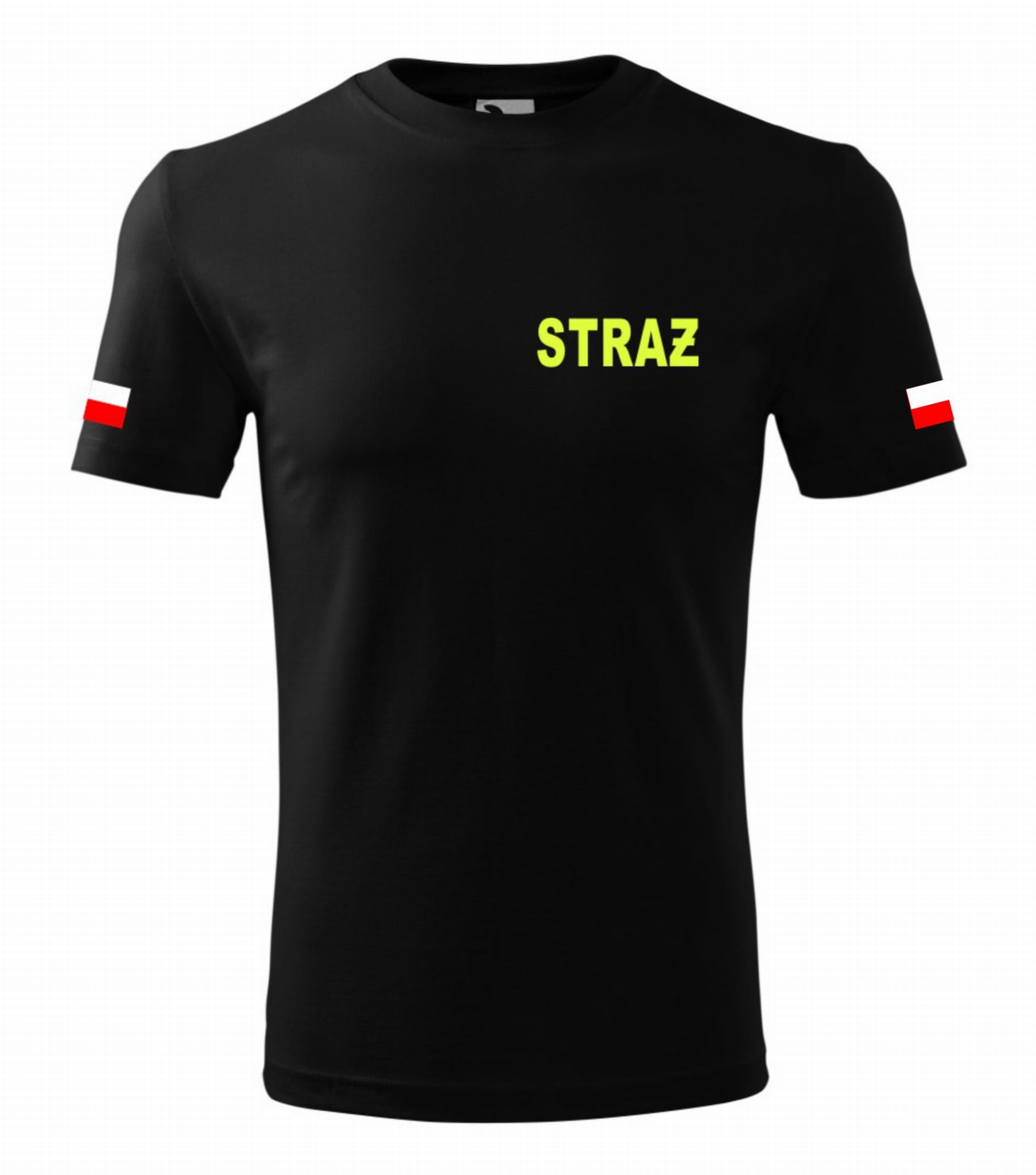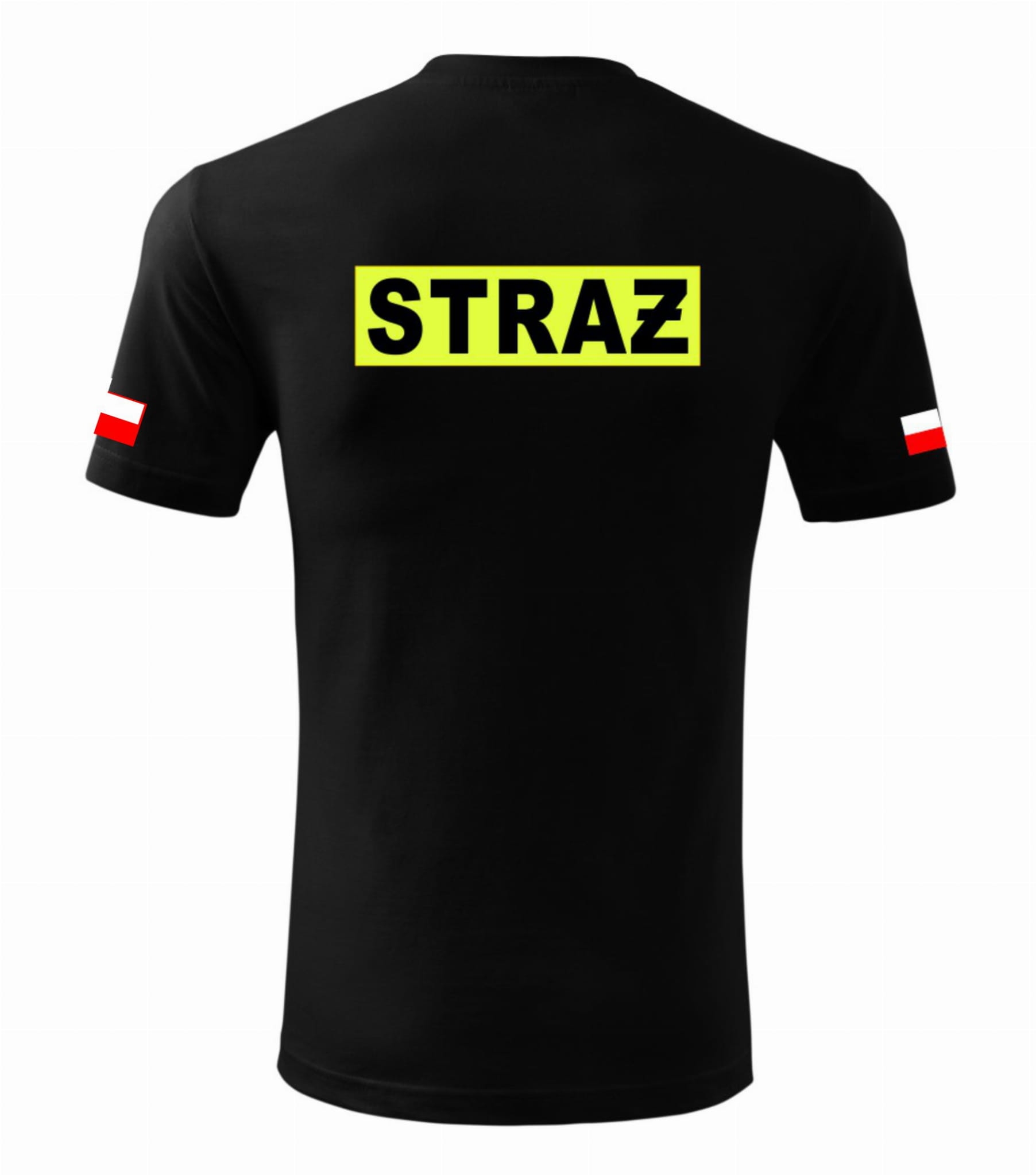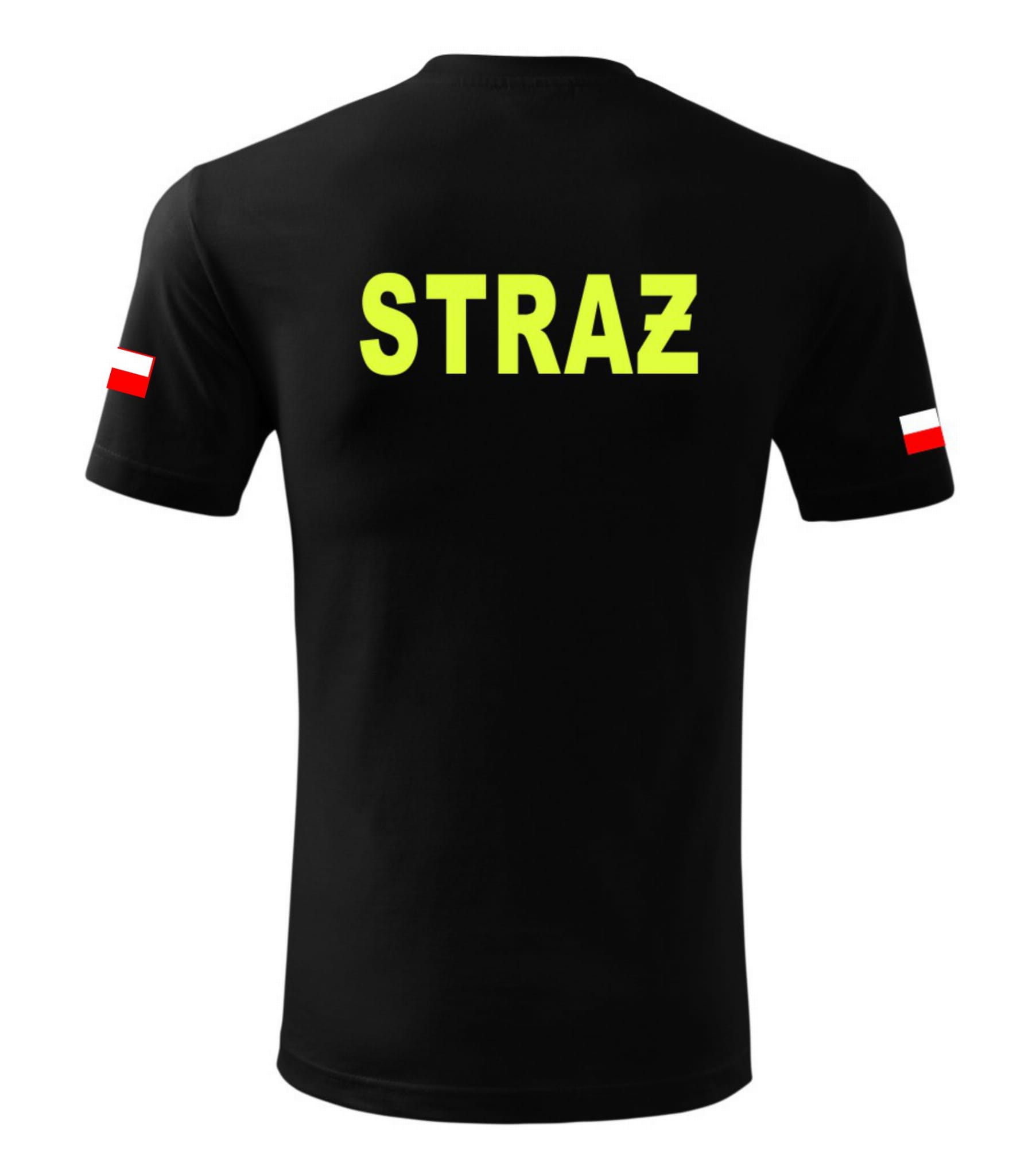 Koszulka Męska STRAŻ z nadrukiem Fluorescencyjnym żółtym, FLUO prostokątny, biały oraz biały prostokątny