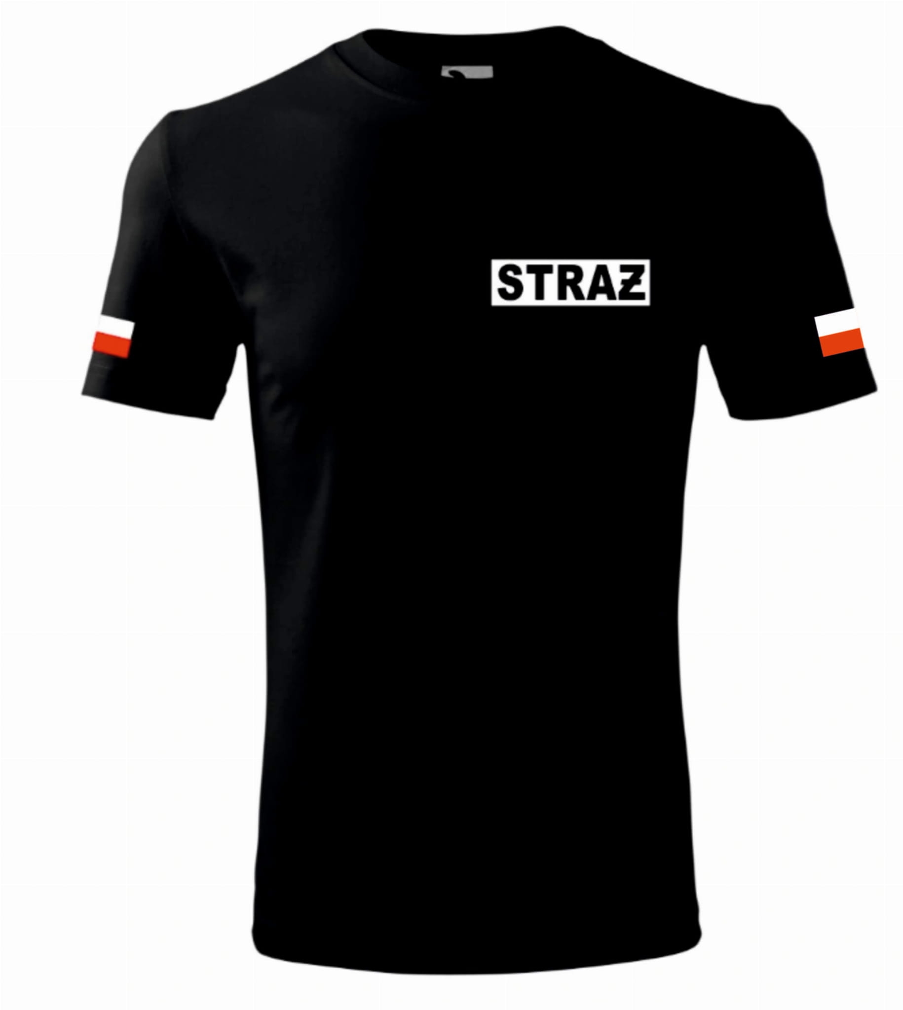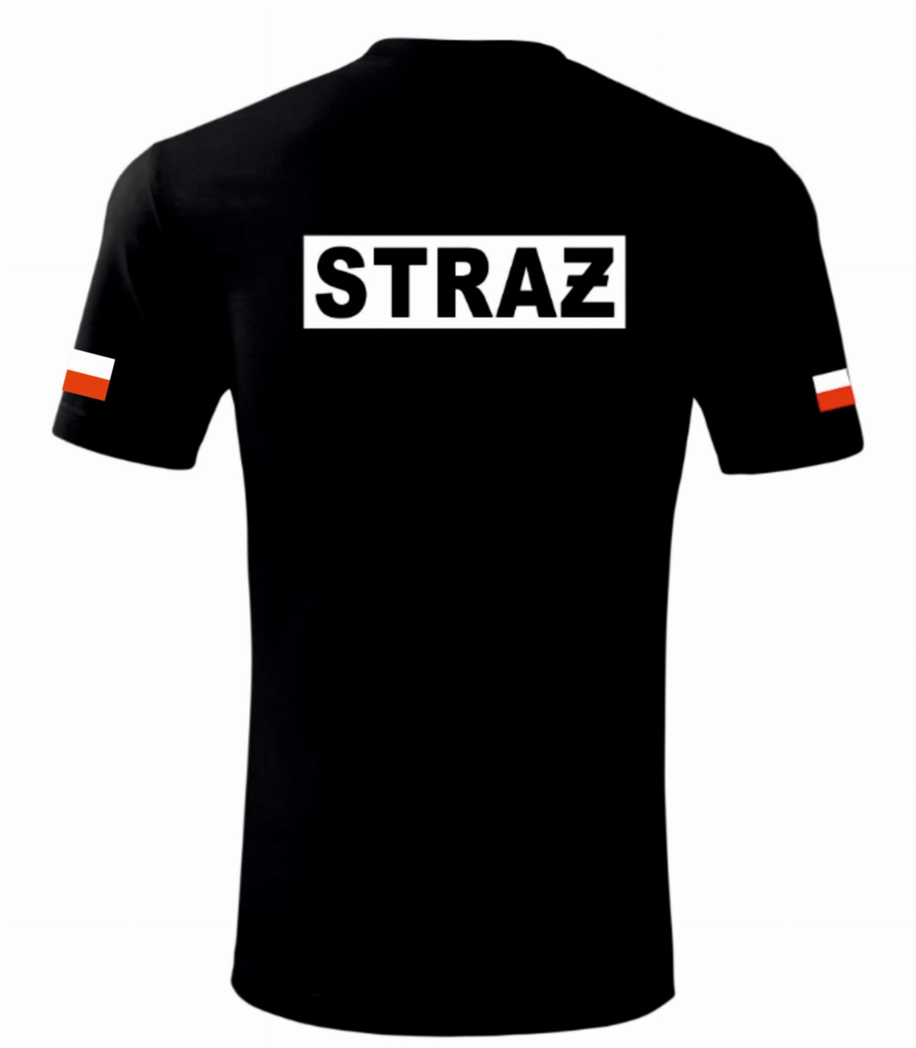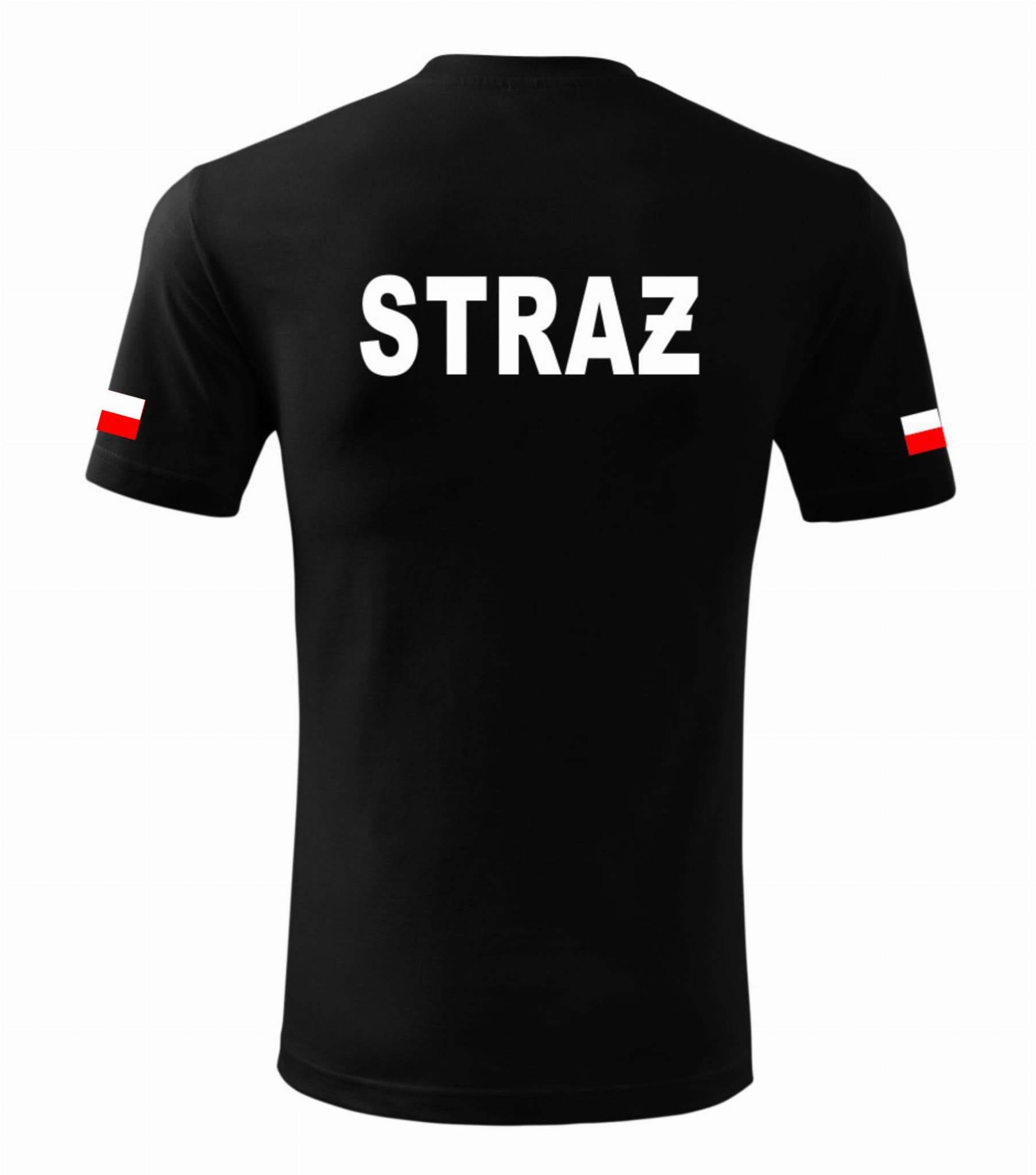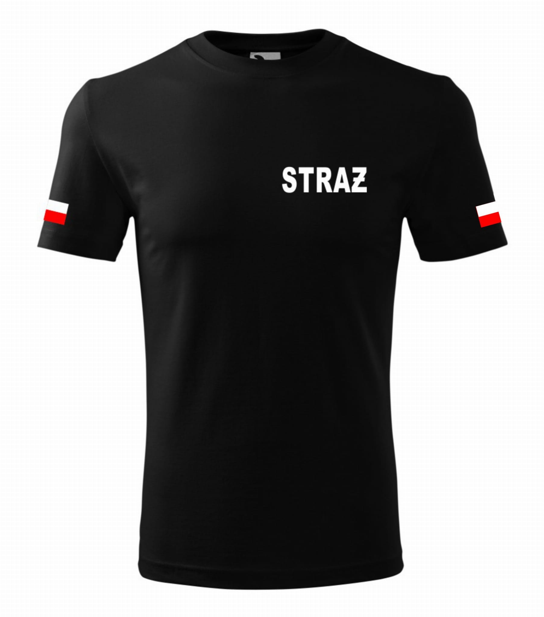 Koszulka Czarna Męska Straż Nadruk 2 Flagi