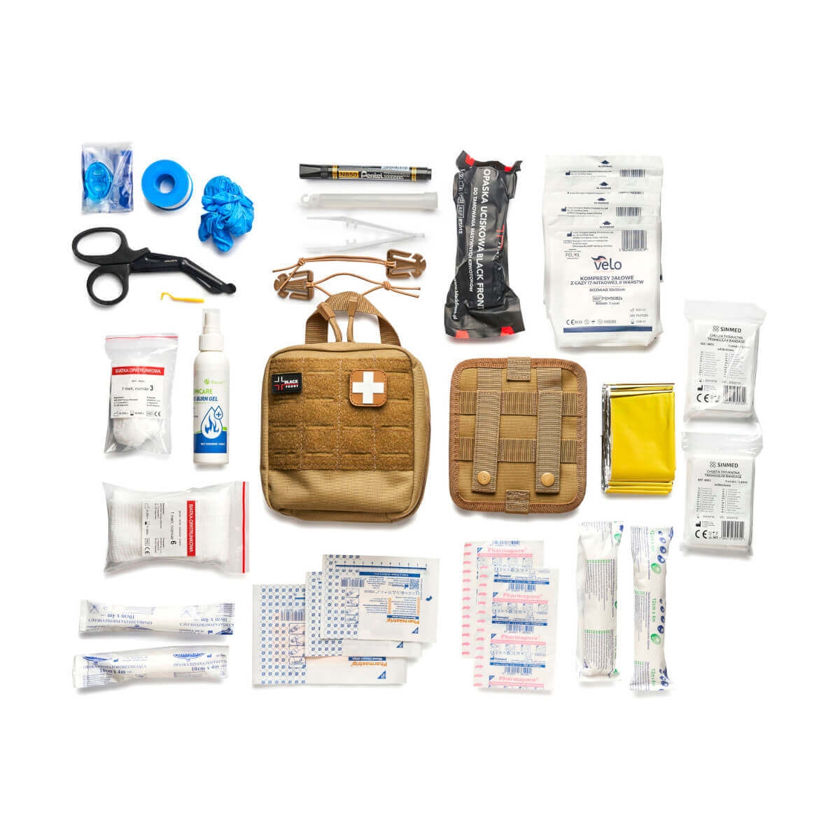 - Apteczka wraz z panelem rzepowym systemu Molle – 1 szt.