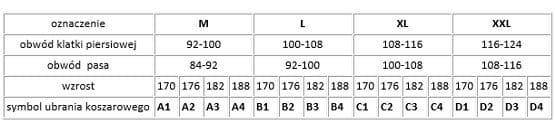 w przypadku konieczności zestawienia innego rozmiaru bluzy/kamizelki* i spodni, prosimy wybrać obok ceny rozmiar, który dotyczy bluzy/kamizelki*, a w uwagach do zamówienia dopisać rozmiar spodni z tabeli, np "spodnie B3". Zamówienie takie traktowane będzie jako niestandardowe, co może spowodować dłuższy czas oczekiwania.