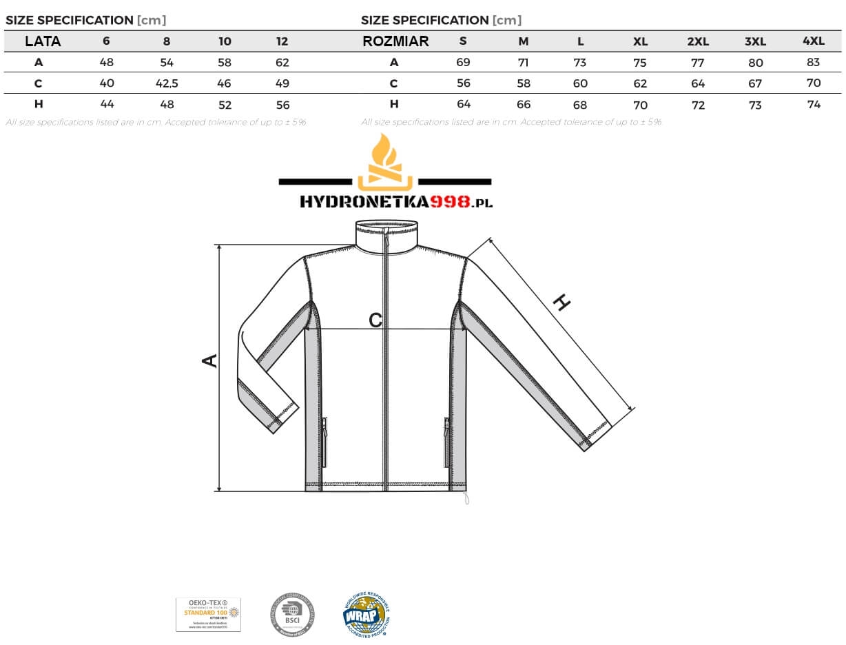 Dziecięcy polar z pełnym zamkiem, bocznymi kieszeniami zapinanymi na suwak, elastycznymi mankietami. Zapewnia dobrą ochronę przed zimnem.