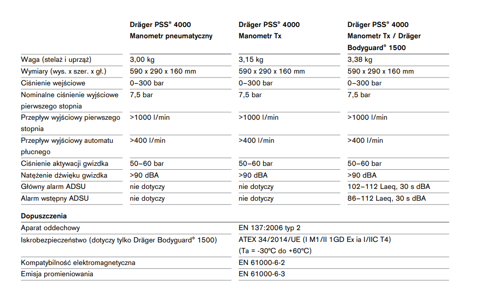 - Dräger Bodyguard 1500 do bezprzewodowej transmisji danych dotyczących ciśnienia