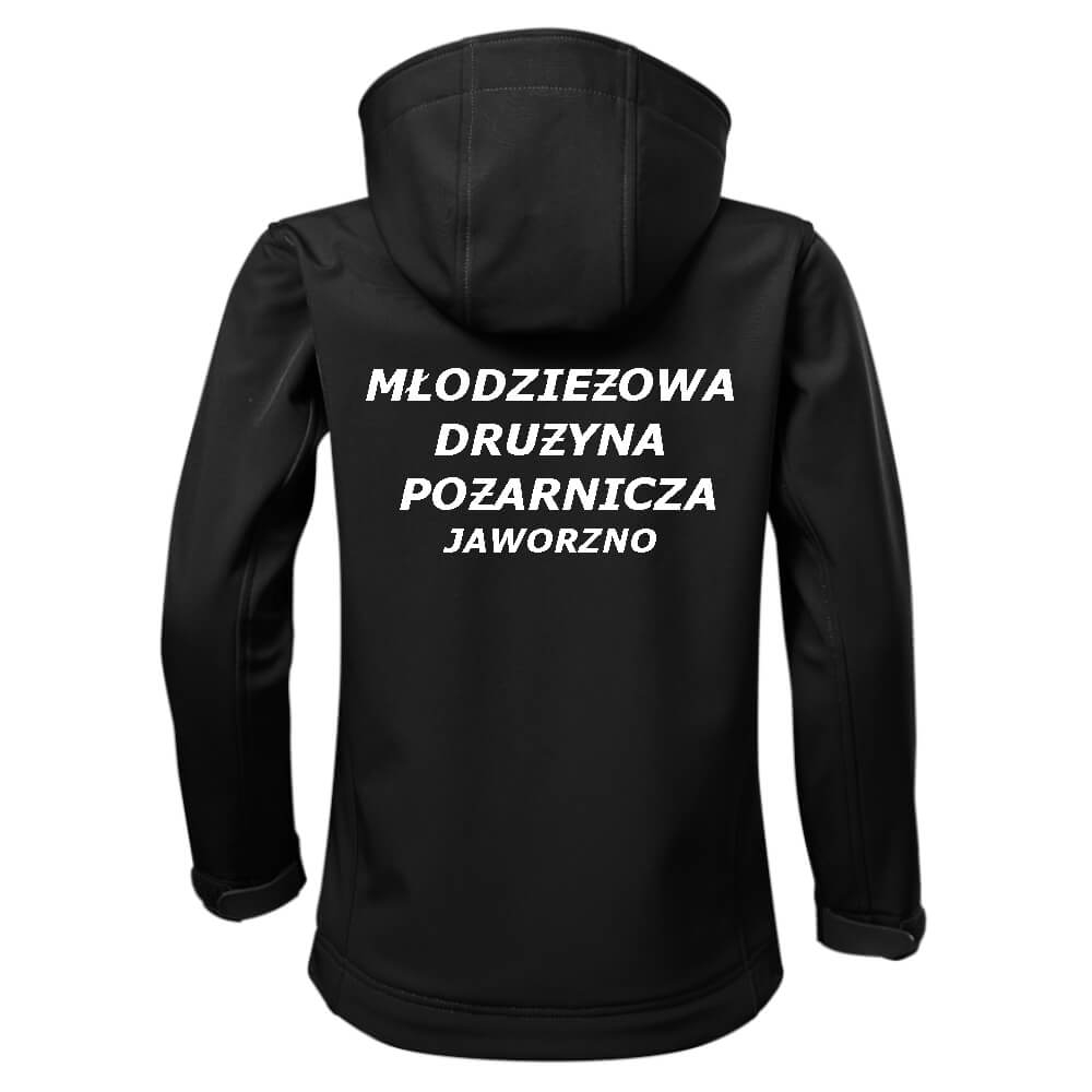 Dziecięca Czarna Kurtka Softshell Strażacki Personalizacja Termotransfer DTF Membrana Kaptur
