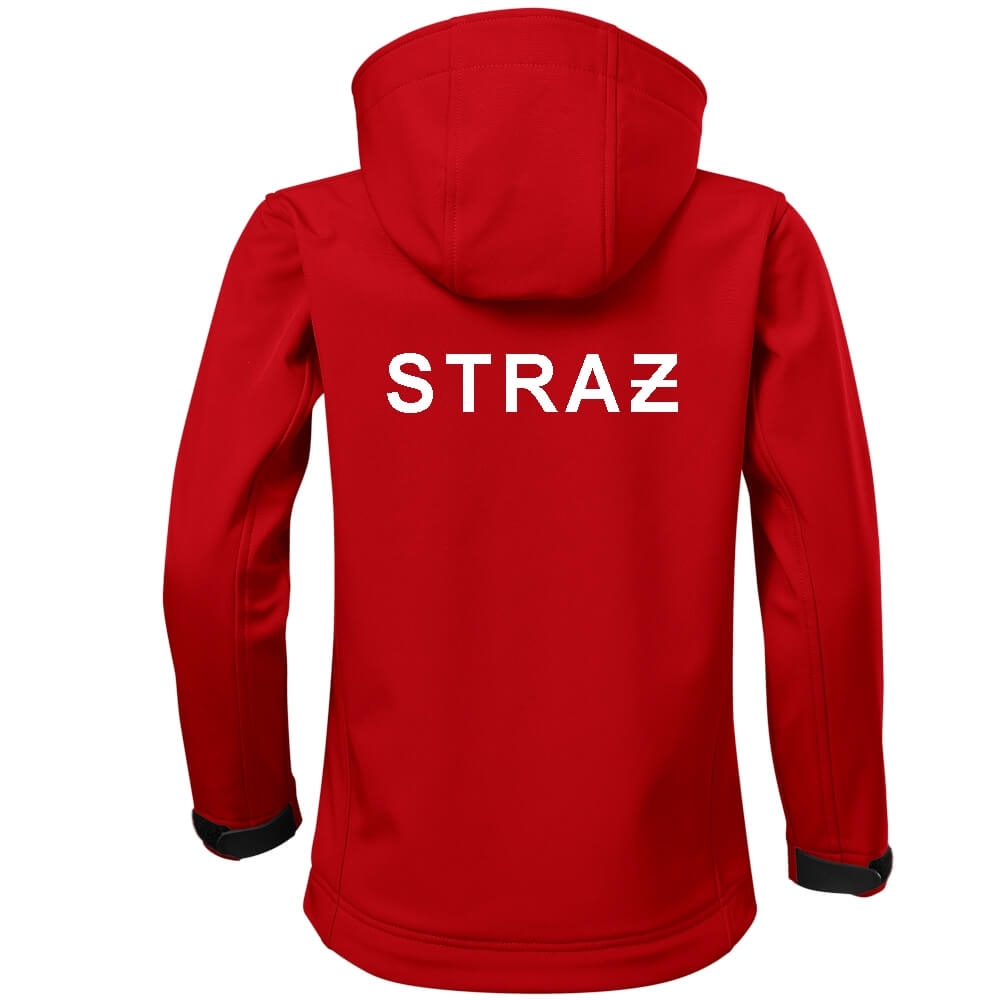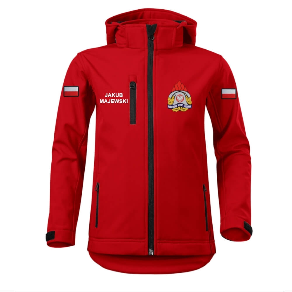 Dziecięca Czerwona Kurtka Strażacka Softshell Personalizacja Termotransfer DTF Membrana Kaptur