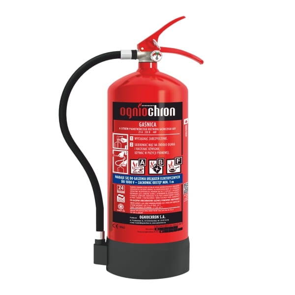 Gaśnica z pianą dobrze gasi oleje i tłuszcze jadalne. Możesz postawić ją w pobliżu kominka lub przy wejściu – ważne, by była dobrze widoczna i gotowa do użytku w każdej chwili. Gaśnica płynowa 6 litrów spełni swoją rolę również przy gaszeniu pożaru drewna lub innych ciał stałych. Środek gaśniczy szybko i skutecznie odcina dopływ tlenu do ognia, dlatego możesz sprawnie opanować pożar w zarodku.