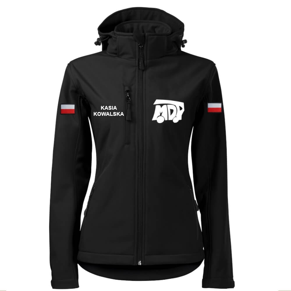 Czarna Damska MDP Kurtka Softshell Strażacki Personalizacja Haft Membrana Kaptur