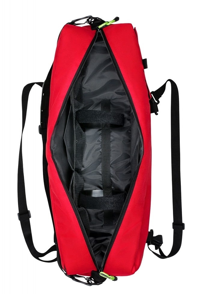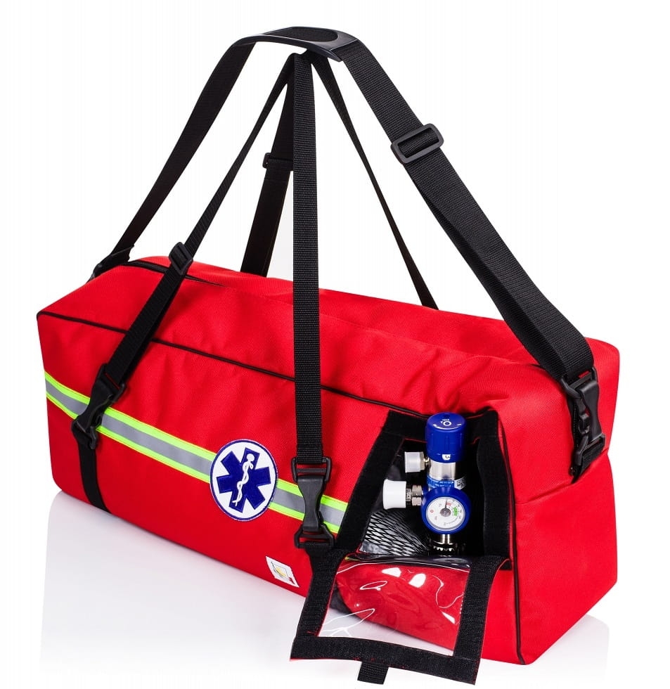 Zestaw ratowniczy z inhalatorem tlenowym znajduje się w wytrzymałej torbie wykonanej z powlekanego materiału CORDURA. Posiada ona 6 uchwytów na rurki intubacyjne. Została wyposażona w szyny niezbędne do mocowania torby na noszach oraz wygodne szelki, dzięki czemu torbę można nosić także jak plecak. Uchwyt torby jest spinany rzepem, co zapewnia pewny i komfortowy chwyt. Wszystkie elementy wykorzystane przy tworzeniu torby odznaczają się doskonałymi parametrami użytkowymi, dzięki czemu są odporne na uszkodzenia mechaniczne i warunki atmosferyczne. Precyzyjnie zaplanowane wyposażenie zestawu zapewnia dogodne warunki świadczenia pierwszej pomocy. Inhalator tlenowy jest rekomendowany przez ratowników medycznych. Zestaw znajdujący się w przedstawionej torbie zawiera:
