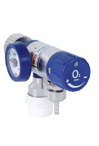 5. Reduktor tlenowy z szybkozłączem typu AGA O2 ze skokową regulacją przepływu od 0-25 l/min ze złączką tlenową - wersja DIN ¾’ standard polski.