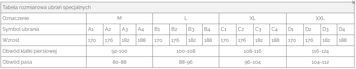 Kombinezon produkowany z rożnych rodzajów tkanin (bawełnianych, CO/PE, CO/PA, tkanin trudnopalnych, aramidowych) w zależności od potrzeb zamawiającego