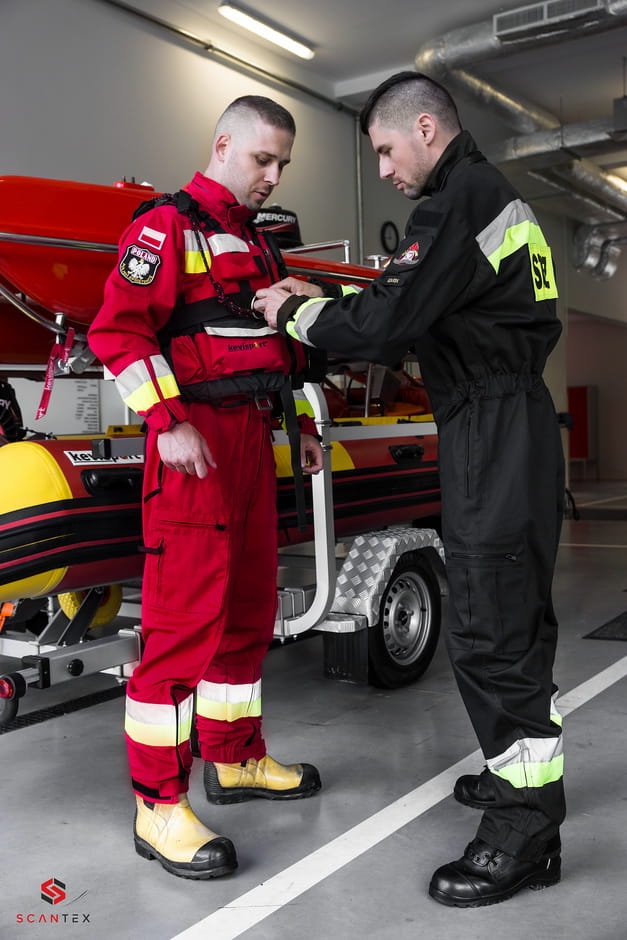 Kombinezon przeznaczoy dla grup ratowniczych GPR. Dwa główne, dwukierunkowe zamki grubocząstkowe pozwalają na ubieranie kombinezonu bez konieczności zdejmowania obuwia. Specjalny krój nogawek, rękawów i pleców umożliwia swobodne wykonywanie wszelkich ruchów ( klękanie, kucanie, pochylanie się, przysiady itp.)