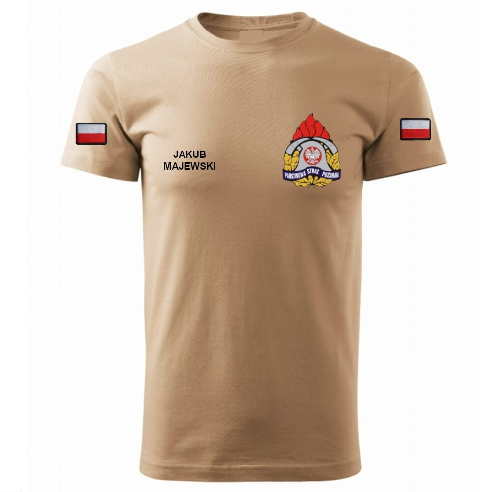 Koszulka strażacka Coyote, OSP-PSP, Indywidualny Haft, T-shirt, DUŻE ROZMIARY / Piaskowa koszulka