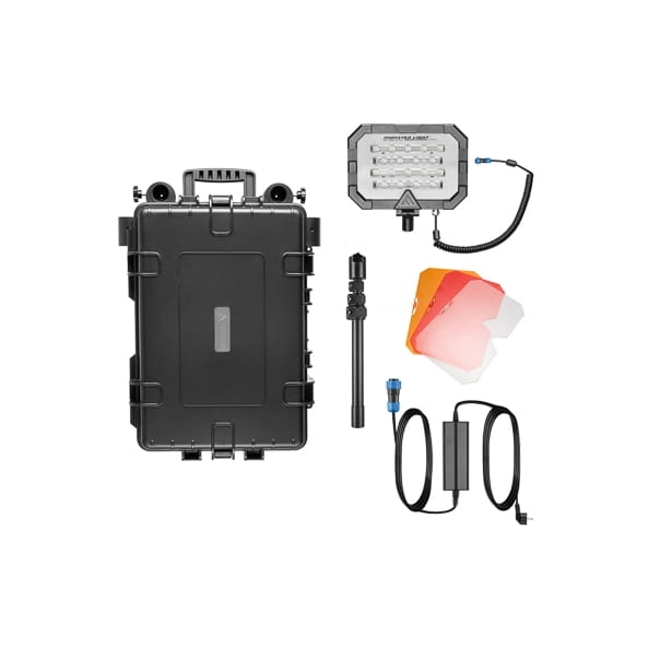 Najaśnica, Mactronic MONSTER 360 TWIN, 50Ah 48000 lm, ładowalna, zestaw (2x głowica 24K lm, walizka, zasilacz 230V, maszt do głowicy, komplet 3 filtrów: rozpraszający, pomarańczowy i czerwony)