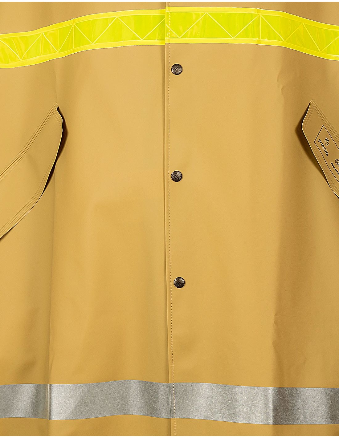 Peleryna stosowana jako odzież służbowa w trudnych warunkach pogodowych. Posiada wygodne zapięcie na napy na całej długości oraz taśmy odblaskowe zwiększające widzialność. Wykonana techniką obustronnego zgrzewania, co skutecznie zwiększa wytrzymałość szwów. Funkcjonalne otwory kryte patkami na ręce oraz obszerny kaptur.