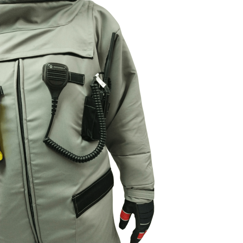 Ochrona głowy jest przypinana do całości kombinezonu suwakiem i została skonstruowana w taki sposób, aby umożliwić pracę w hełmie ochronnym (strażackim, wojskowym, policyjnym, monterskim, budowlanym, itp.). Dodatkowo połączenie kaptura z kombinezonem jest uszczelnione przy pomocy kołnierza zapinanego na rzep.