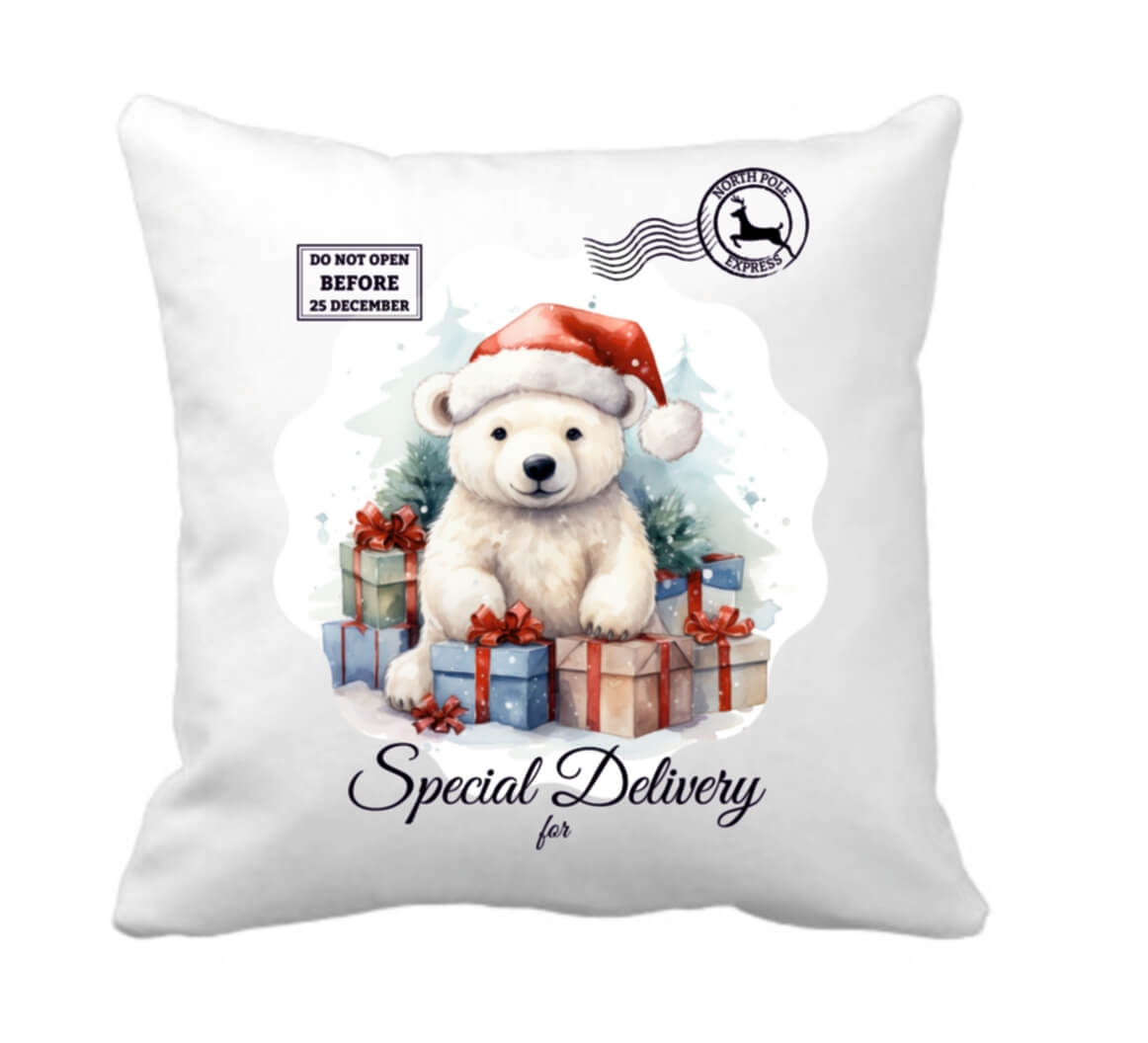 Poduszka Biały Niedźwiedź Z Prezentami