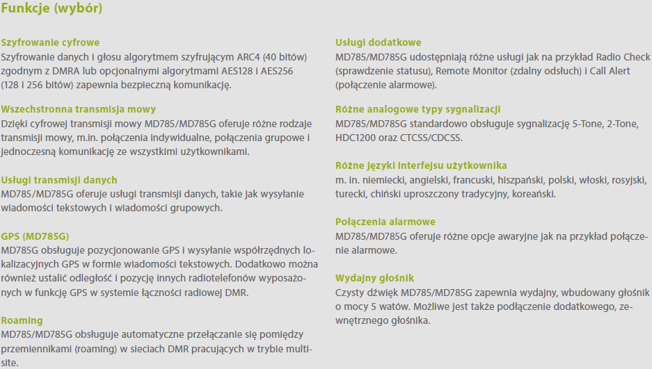 | Raster kanałowy | 12,5 / 20 / 25 kHz (analogowy), 12,5 kHz (cyfrowy) |