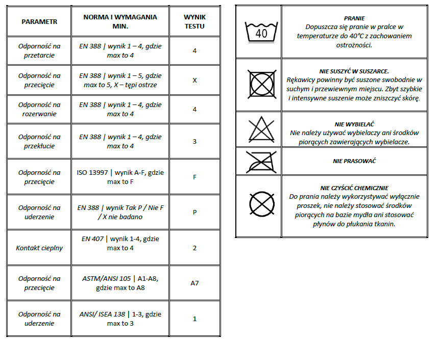 Rękawice spełniają normę EN 388:2016 - 4X43 FP