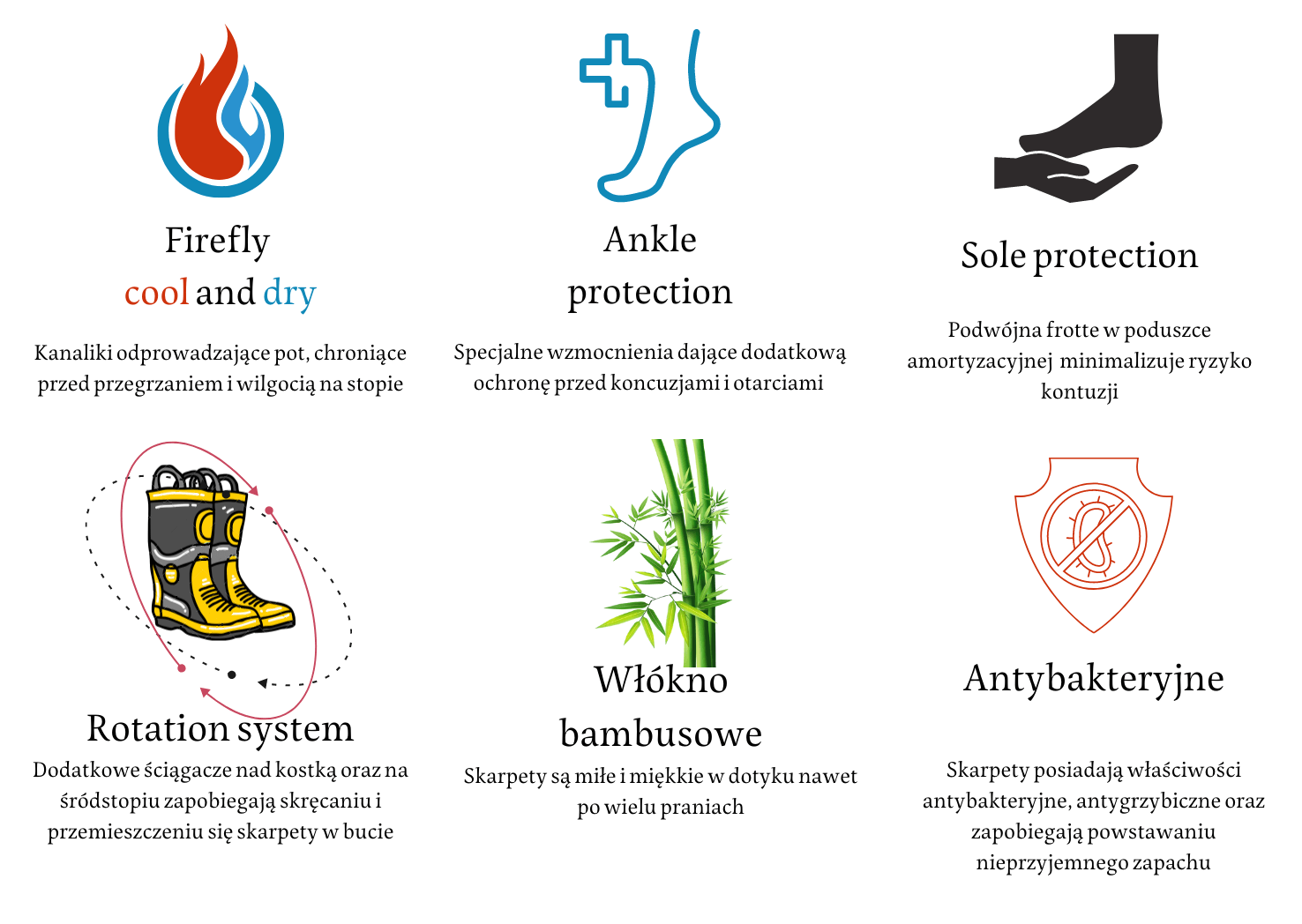 Rozwiązania techniczne zastosowane w skarpetach Firefly FF01L