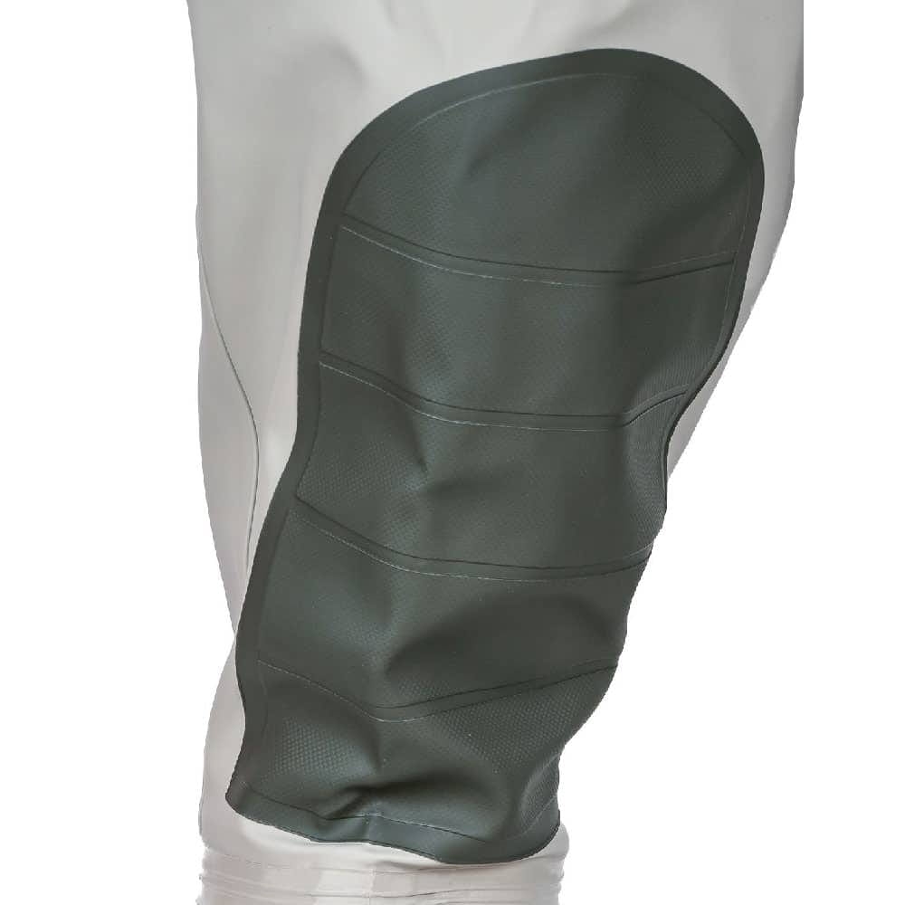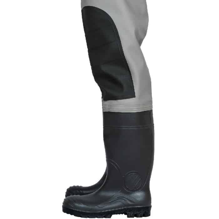 Produkt premium wykonany ze spodni wodoochronnych połączonych na stałe z wysokiej jakości kaloszami. Przydatne wzmocnienia na kolanach chroniące przed uszkodzeniami mechanicznymi. Szczelność i wytrzymałość zapewnia technika obustronnego łączenia materiałów. Dla lepszego komfortu użytkowania zastosowano regulowane szelki oraz możliwość wygodnego przechowywania dokumentów w specjalnej, wewnętrznej kieszeni.