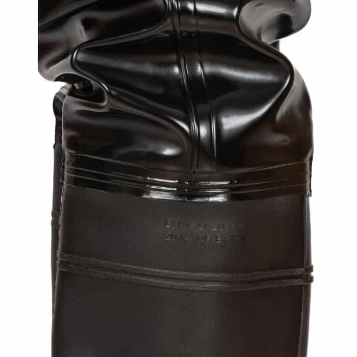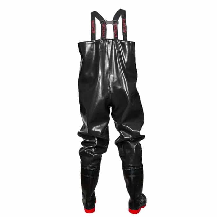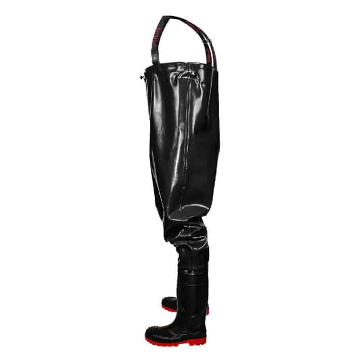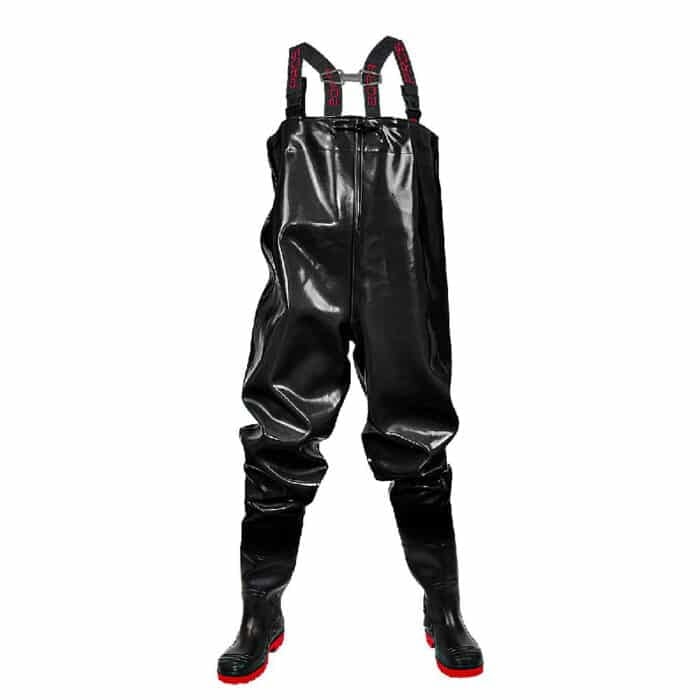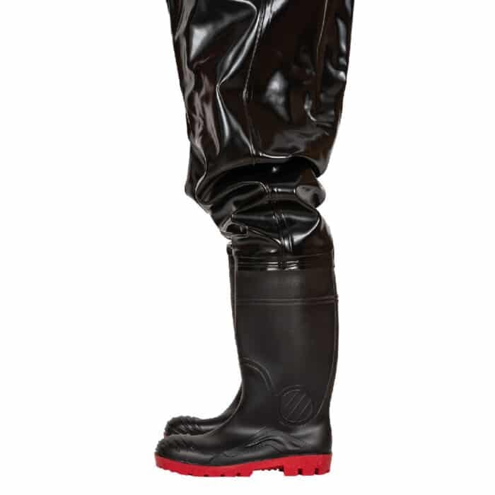Spodniobuty wodoochronne w kolorze czarnym, o wyjątkowej odporności na uszkodzenia mechaniczne. Wysokiej jakości kalosze zabezpieczają przed poślizgiem w trakcie użytkowania. Produkt wykonany z wytrzymałego materiału, nie wymagającego konserwacji. Jego wierzchnia warstwa zmniejsza ryzyko przecięcia i przebicia. Możliwość dopasowania obwodu za pomocą regulacji na wysokości klatki piersiowej. Praktyczne szelki i kieszeń wewnętrzna na dokumenty dopełniają funkcjonalności.