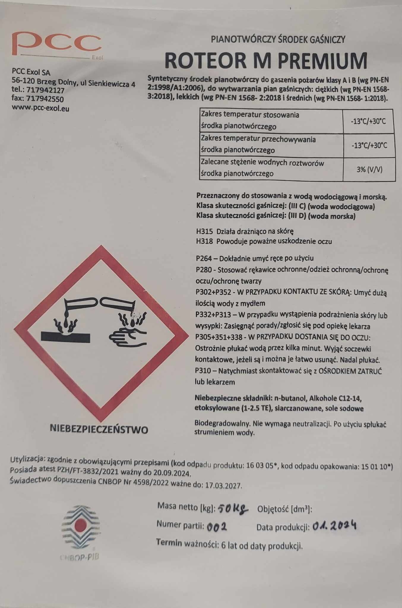 Środek Pianotwórczy Roteor M 3% Premium 25 Kg
