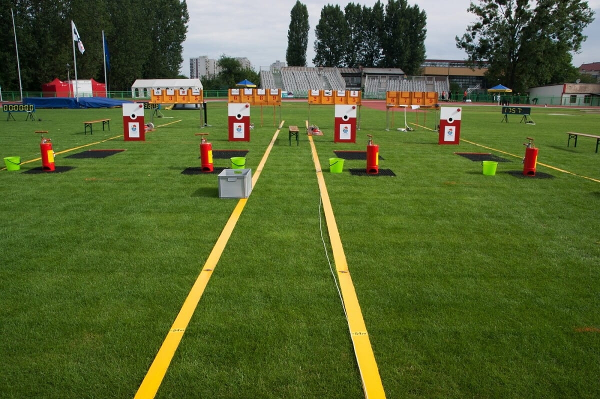 Na taśmie zaznaczone są miejsca do ustawiania przeszkód.