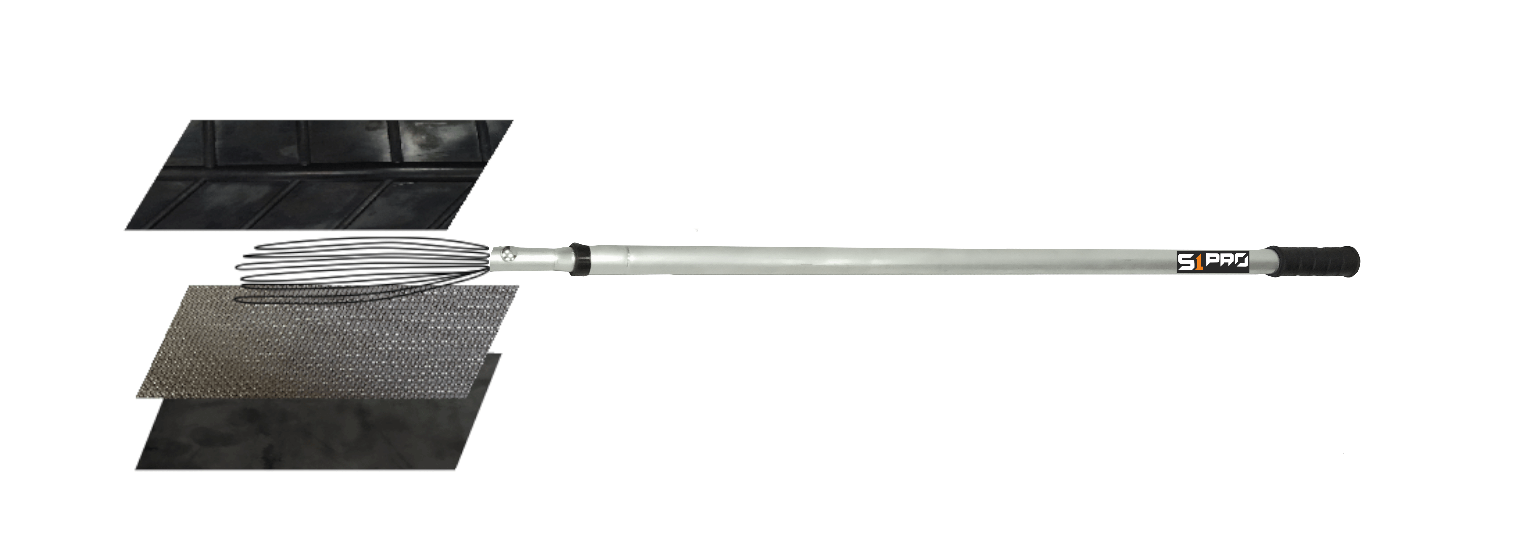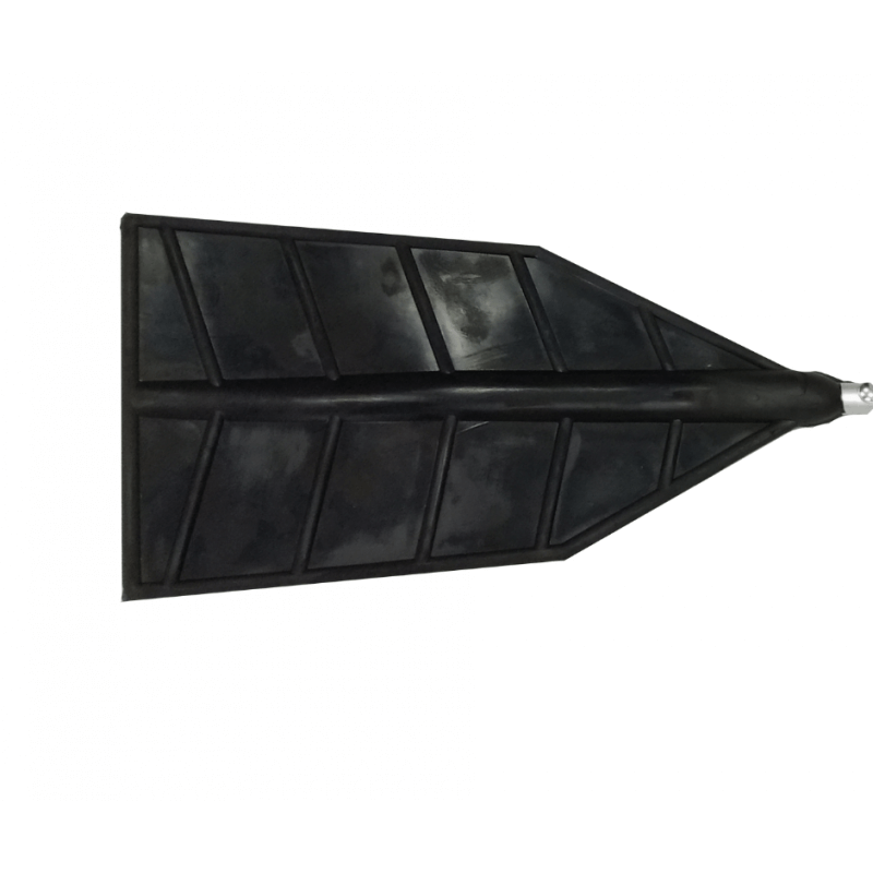 Tłumica do gaszenia pożarów traw i ściółki leśnej, zbudowana z teleskopowej rurki aluminiowej o długości 1550 mm i średnicy 25 mm i 30 mm, oraz użebrowanej wzmocnionej części roboczej (275 mm x 490 mm).