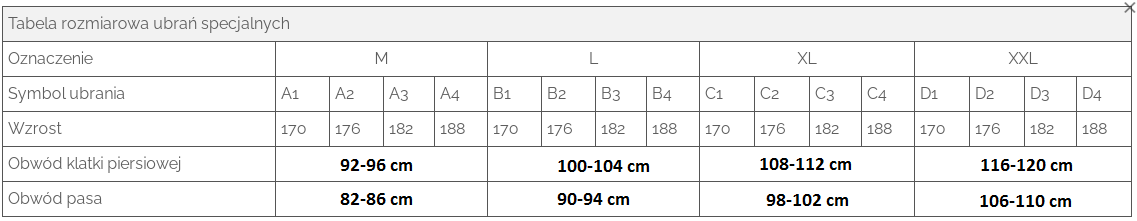 we wszystkich trzech kategoriach normy europejskiej EN 469:2005+A1:2006+AC:2006 i EN ISO