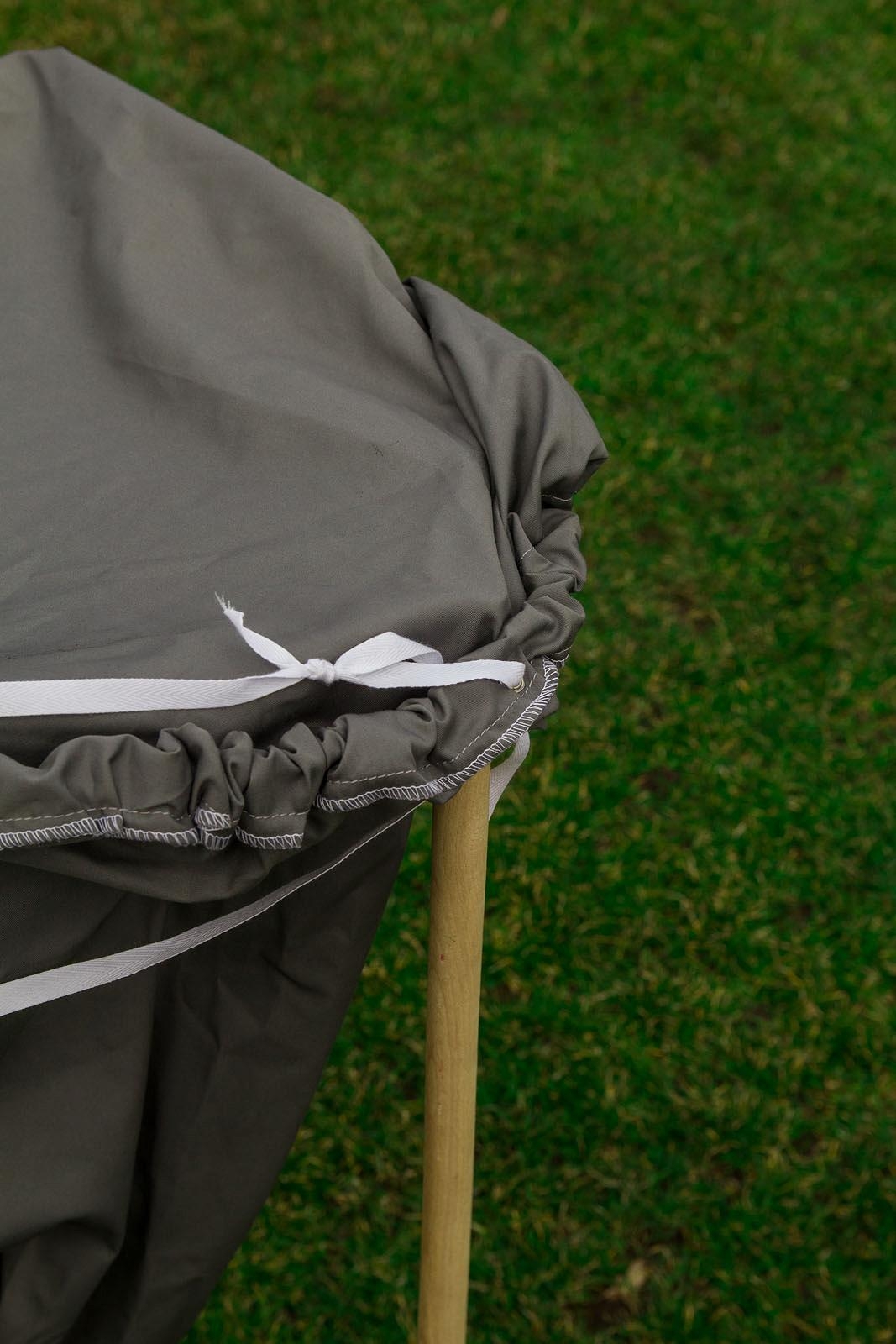 - Worek jest na dole wiązany, górna część zakończona ruchomą klapką.