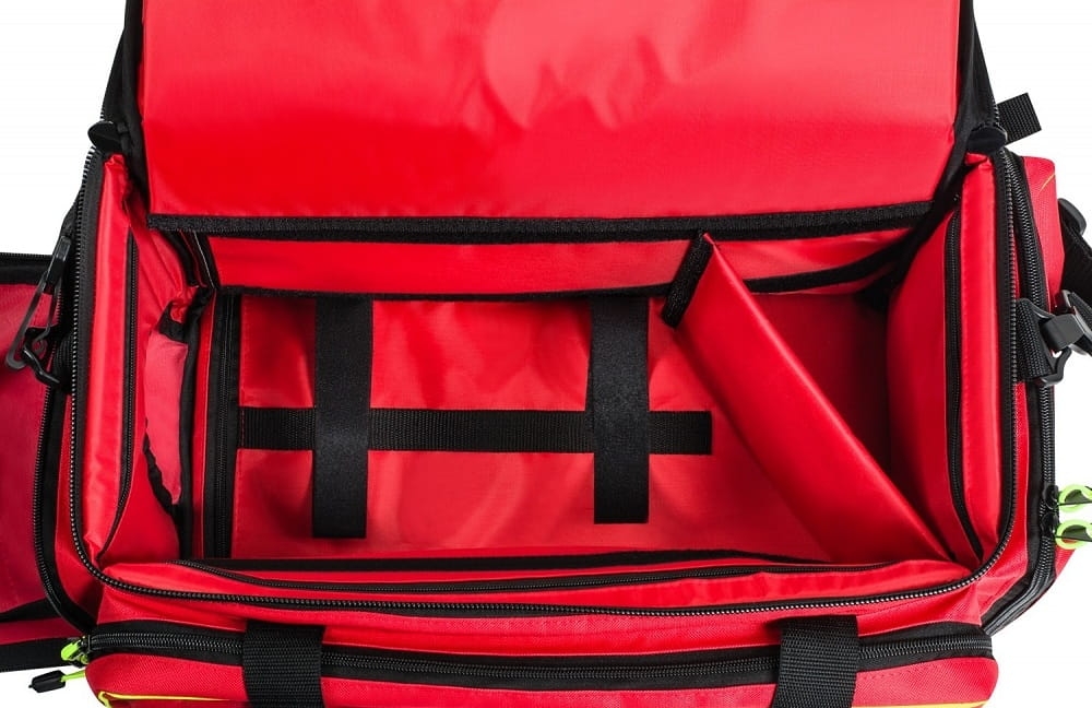 W kieszeni górnej zostało specjalnie zaprojektowane miejsce na pakiet opatrunków. W kieszeniach bocznych miejsce na drobny sprzęt oraz specjalny uchwyt z miejscem na kołnierz ortopedyczny dwuczęściowy.