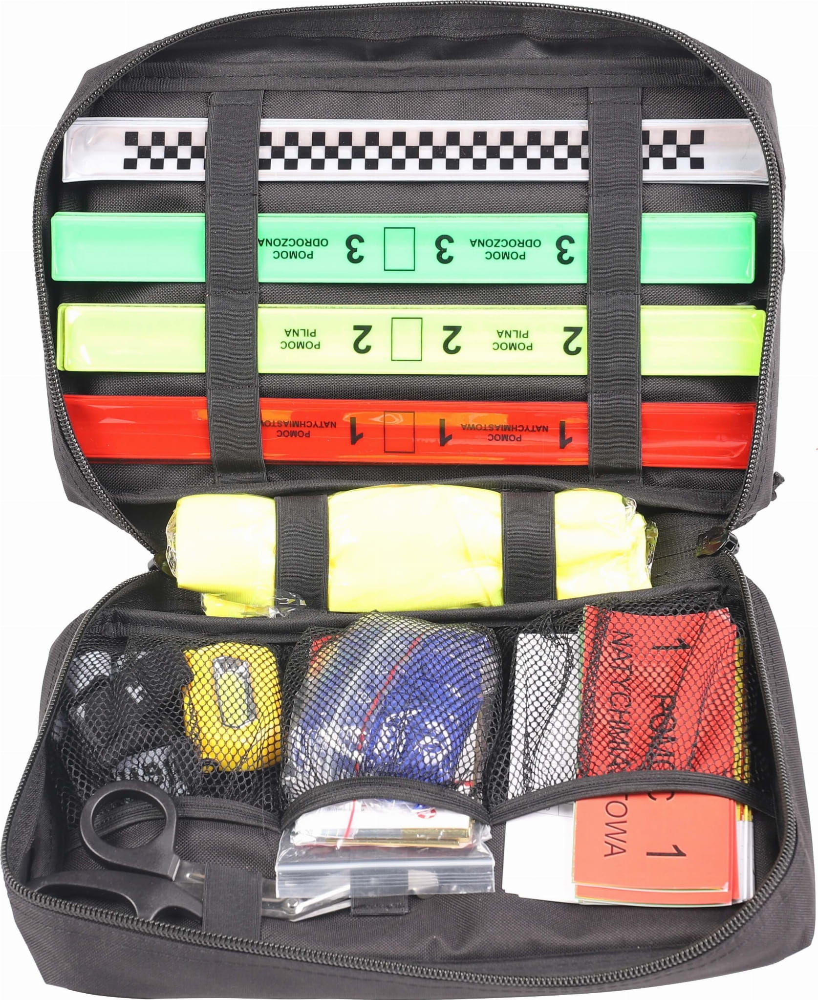 - Opaski odblaskowe służące do segregacji poszkodowanych – 52 sztuki (po 13 szt. każdego koloru)